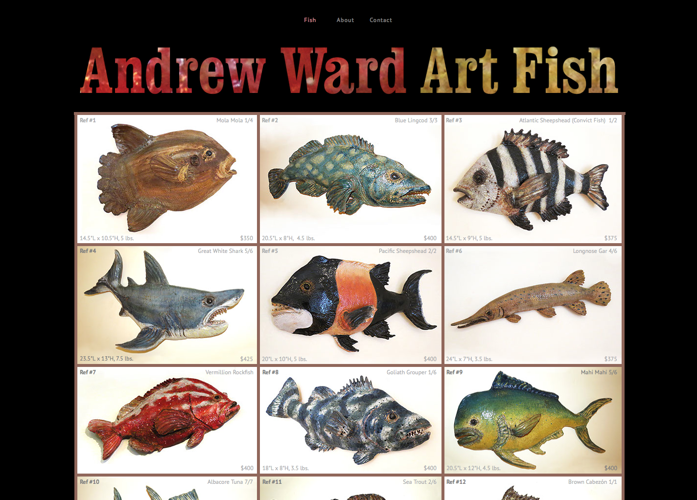 Andrew is on hiatus from making new Fish, but there is a large stock available for purchase. Please contact us if interested.