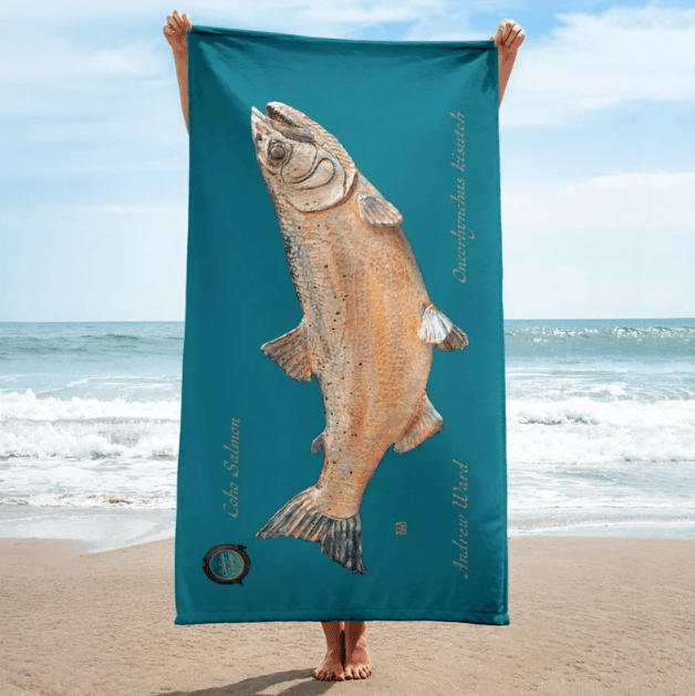 Andrew Ward’s gallery shop is now open at GaleriaOceano.com. with an assortment of Fish mugs, beach towels, placemats, and shirts, with more to come.